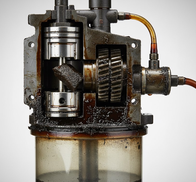 Если масло в гидравлике загрязнено, последствия проявляются достаточно быстро. Сначала система начинает работать медленнее: клапаны заедают, дроссели забиваются, насосы теряют производительность. Со временем это приводит к более серьезным проблемам.